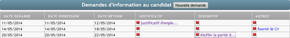 A l’instar du sous module Demande d’information au candidat, vous pouvez également garder une trace de vos échanges avec les inspecteurs.